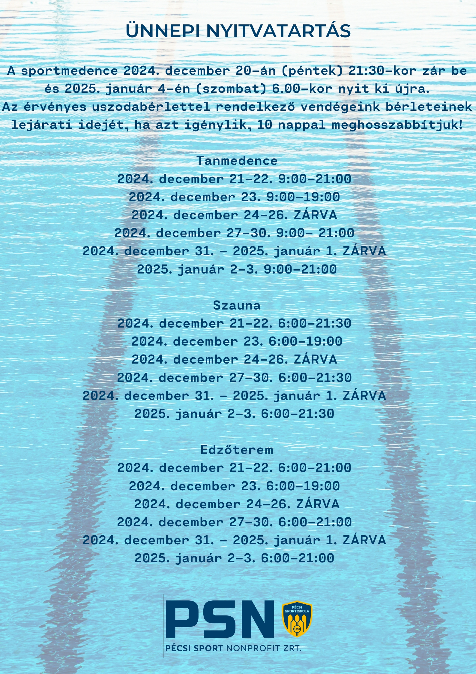 A pécsi Hullámfürdő ünnepi nyitvatartása