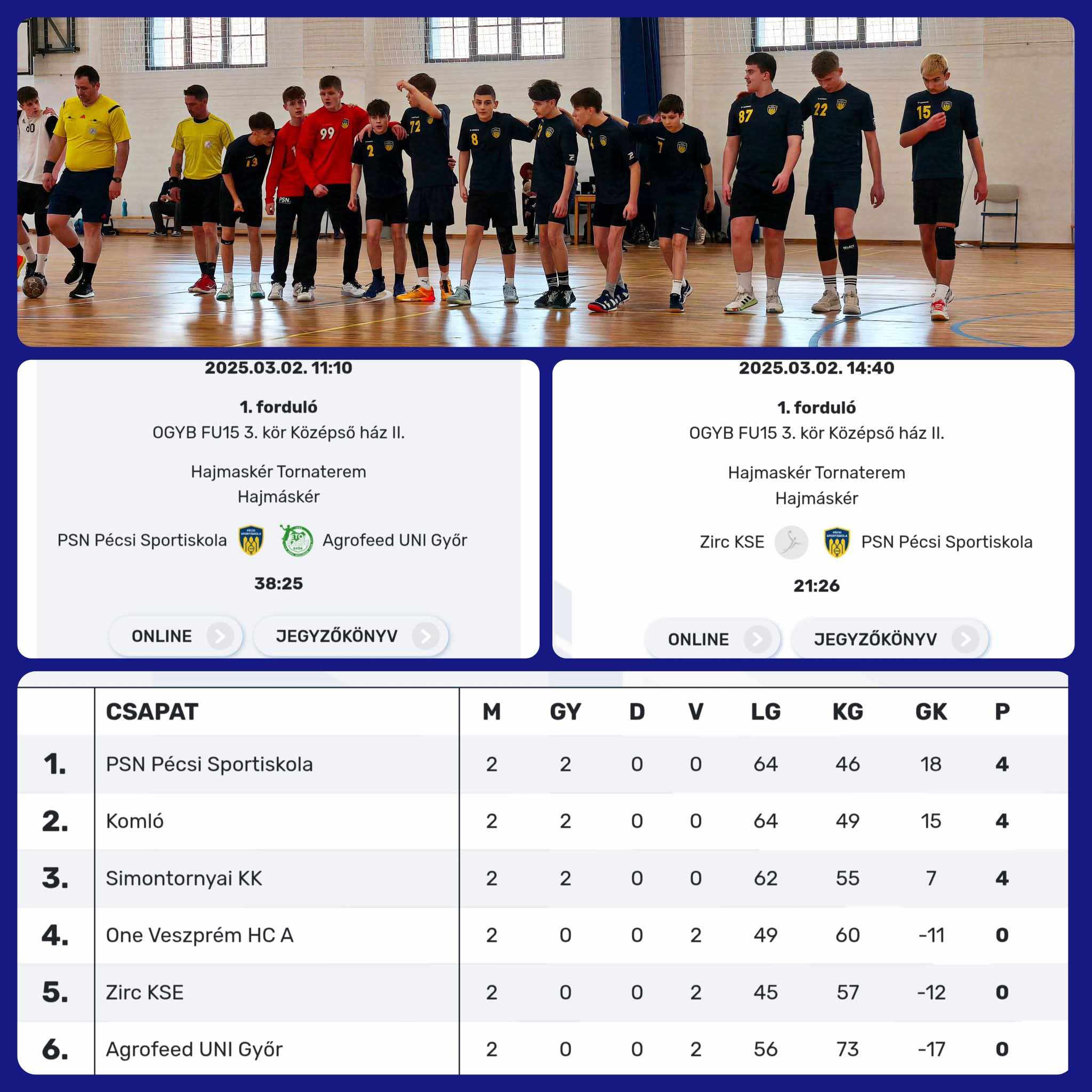 Máv Előre-Cunder Kézisuli – PSN Zrt. – Pécsi Sportiskola: 25-21 (11-8)
