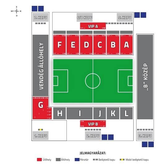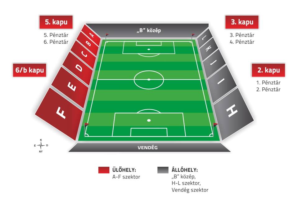 Jegyet a helyszínen a B-közép bejáratánál található 2-es és 3-as pénztárban, illetve északon a 4-es és 5-ös pénztárban vásárolhatnak szurkolóink. Belépéshez a B-közép szektorba a 3-as, az északi ülő szektorba az 5-ös kaput nyitjuk meg. Azoknak, akik elővételes jeggyel vagy bérlettel rendelkeznek, megnyitjuk a 6/B kaput is, ahol sorban állás nélkül, gyorsabban juthatnak be szurkolóink.